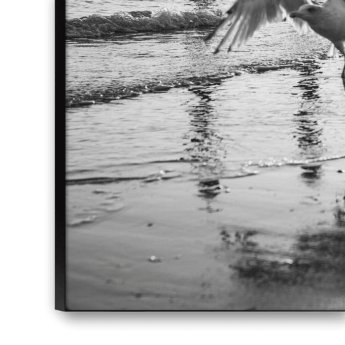Diese lebhafte Schwarz-Weiß-Fotografie aus Flushing fängt einen dynamischen Küstenmoment ein, in dem Möwen um eine Reihe von mit Seepocken bedeckten Strandpfählen herum starten und landen. Das Sonnenlicht reflektiert stark auf dem nassen Sand und den Wellen, wodurch Silhouetten und Schatten ein grafisches Spiel bilden. Die Komposition strahlt sowohl Bewegung als auch Ruhe aus - ein flüchtiger Moment, eingefroren in der Zeit. Ein Kunstwerk, das die raue Schönheit des niederländischen Küstenlebens hervorhebt.