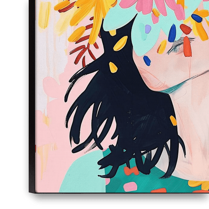 Details: Frau, Blumen, Portrait, bunt, abstrakt, Natur, lebendig, modern, Kunst, kreativ
