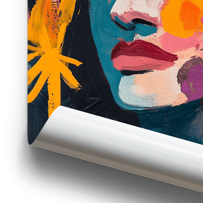 In diesem Kunstwerk werden eine Frau und Blumen in einer Mischung aus warmen und bunten Farben und Tönen zum Leben erweckt, die wunderschön ineinander übergehen und eine sommerliche Atmosphäre hervorrufen.