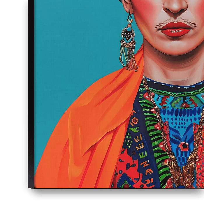 Floral Frida Porträt in blauem Hintergrund