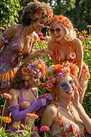 Bestelle dieses Blumen-Wandbild Flower-Power-Frau mit Blumen von Egon Zitter als Reproduktion auf Leinwand, Alu-Dibond, als Poster, Fototapete oder Acrylglasbild.