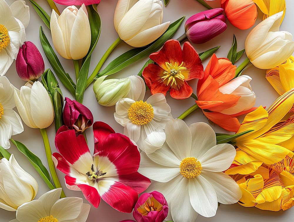 verschiedene digital erzeugte Kreationen und Stile von Frauen mit Blumen