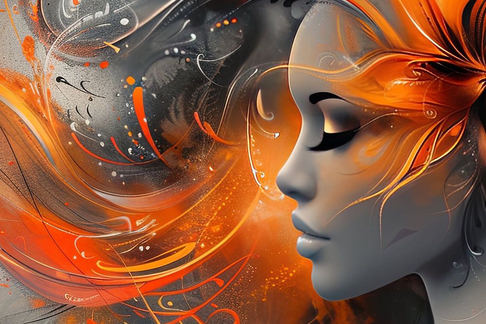 digitales malerisches abstraktes Bild einer fiktiven Frau mit Blumen