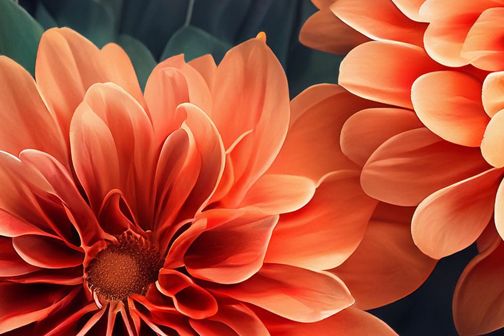 Dieses Bild zeigt orangefarbene Blumen im Vordergrund, die mit ihrer warmen Leuchtkraft sofort ins Auge fallen, während im Hintergrund zarte pinke Blüten eine weiche Tiefe erzeugen. Waldgrüne Blätter rahmen die Komposition ein und bringen Ruhe, Natürlichkeit und einen sanften Kontrast in die pastellige Farbwelt. Insgesamt wirkt die…