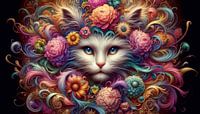Bestelle dieses moderne Wandbild Flüstern der Blumenkatze von Digital Picture Art als Reproduktion auf Leinwand, Alu-Dibond, als Poster, Fototapete oder Acrylglasbild.
