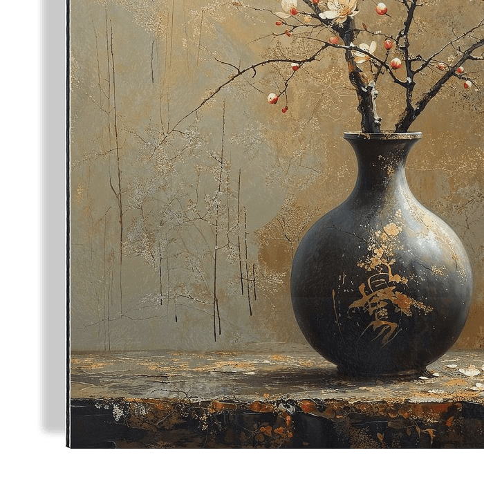 Whispering Bloom - Blütenstillleben, moderne Erdtöne, Japandi-Stil