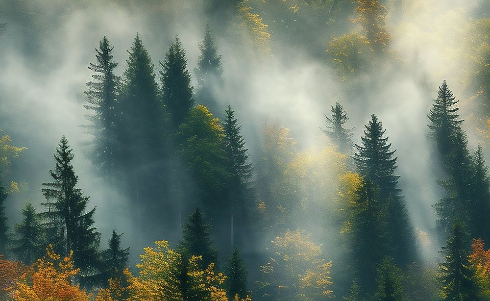 Flug über Nebelwald