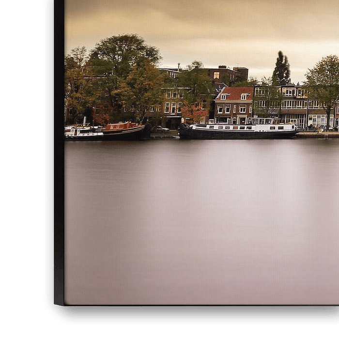 Foto mit langer Verschlusszeit vom Fluss Amstel in Amsterdam an einem bewölkten Tag
