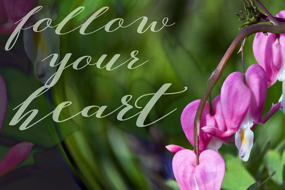 Folge Deinem Herzen, Sinnsprüche, Weisheiten, Zitate, Sprüchwörter, Sprichwort, Tränendes Herz, Botanik, Flora, Collage, Digitalart, Digital Art, Modern, Liebe, Weisheit, Inspiration, Herz, Blumenherz, Muttertag, Herzblume, Herz, Dekoration, Schönheit, Botanik, Abstrakt, Stillleben, Frühling, Jahreszeiten, Aphorismen, Typografie, Natur
