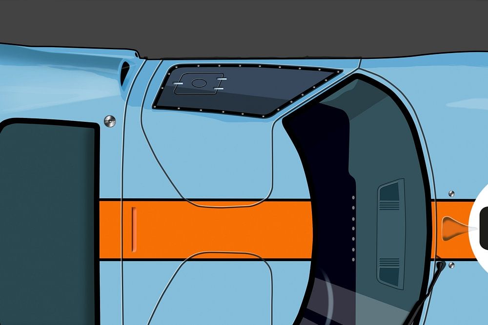 Druckgrafik aus einer Serie legendärer amerikanischer Rennwagen.