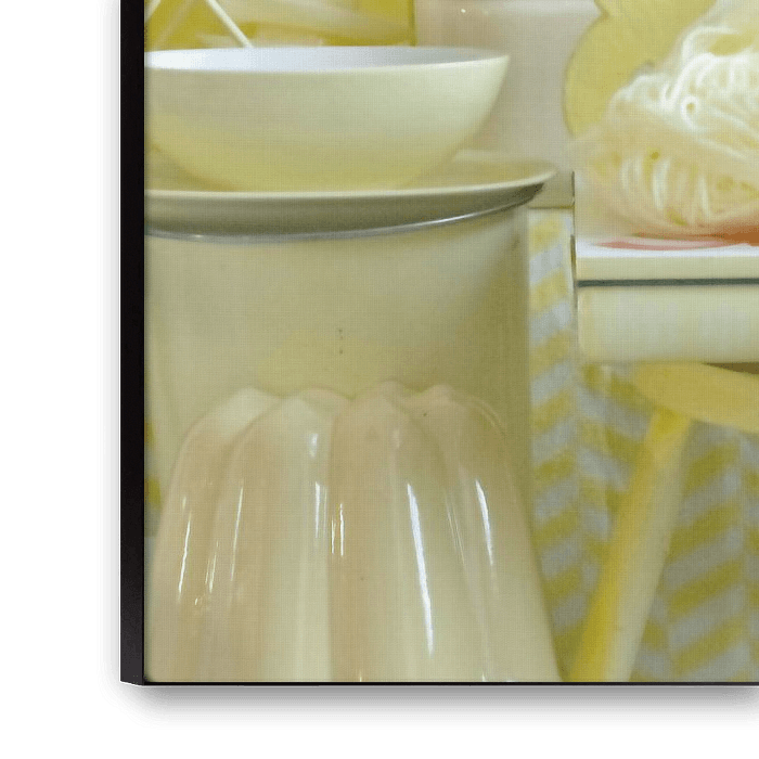 Foto eines Stilllebens mit Retro-/Vintage-Material in zartem Gelb.