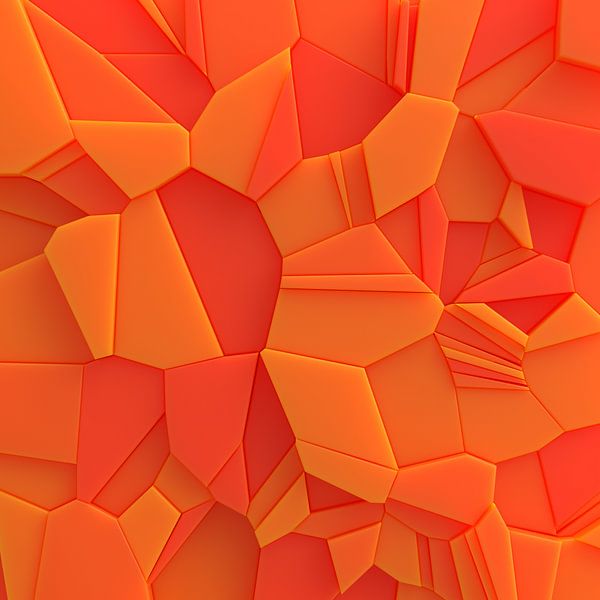 Rendering/Raytracing einer plastisch wirkenden Struktur aus Bruchstücken, Fragmenten, Splittern in diversen Orange-Tönen.
