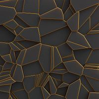 Rendering/Raytracing einer plastisch wirkenden Struktur aus Bruchstücken, Fragmenten, Splittern in Schwarz bzw. Grau mit goldenen Kanten