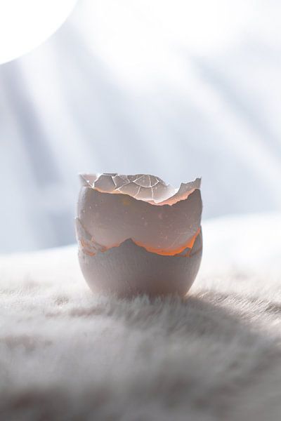 Zerbrochene Eierschalen in Licht und Schatten. Jeder Riss, jedes Stückchen Rand, jede fragmentarische Form fängt das Licht ein, als würde es Geschichten flüstern.