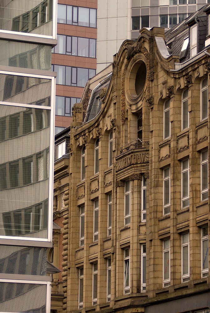 Stadtbild Frankfurt am Main, Deutschland. Kontrast zwischen Alt und Neu.