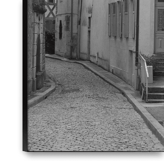 Bestelle dieses Landschafts-Wandbild Frans zwart-wit straatje von Mirjam van Ginkel als Reproduktion auf Leinwand, Alu-Dibond, als Poster, Fototapete oder Acrylglasbild.
