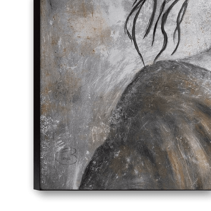 Schöne Acrylmalerei, "in mir". Porträt einer Frau mit schönem, weichem Look in schönen Grautönen. Dieses Gemälde ist handgefertigt und kann in jeder Größe und jedem Material bestellt werden!