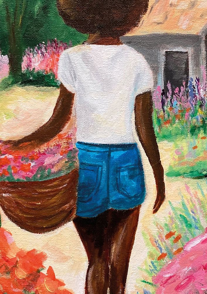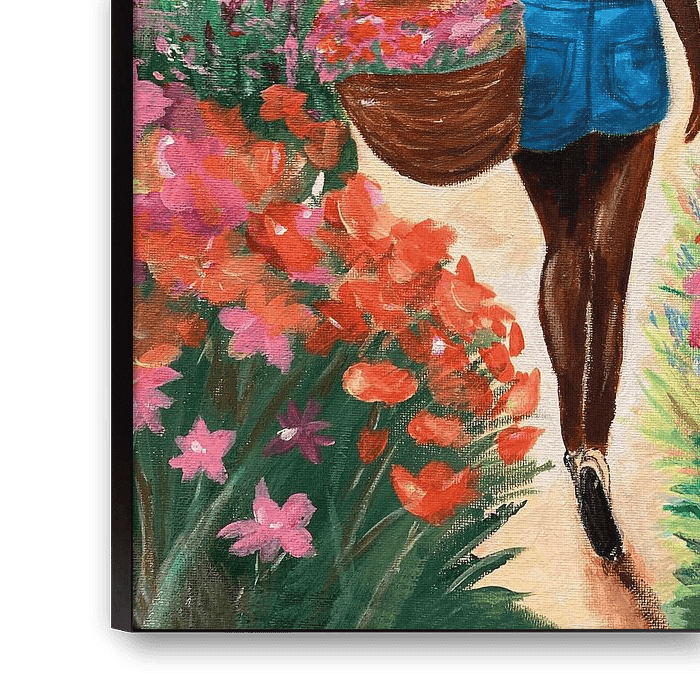 Erleben Sie die Ruhe und Schönheit eines Sommermorgens im Garten mit unserem exklusiven Kunstdruck "Frau im Garten". Dieses stimmungsvolle Poster basiert auf einem Original-Acrylgemälde und zeigt einen blühenden Garten voller Blumen, in dem eine Frau friedlich mit einem Korb voller frisch gepflückter Blumen spazieren geht. Das sanfte Sonnenlicht und die warmen Farben verleihen dem Bild ein verträumtes und warmes Aussehen, das jeden Raum einladend macht.