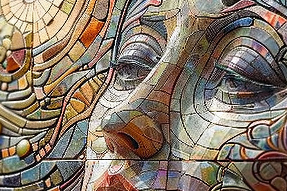 Frau in Mosaik gemalte Illustration mit künstlicher Intelligenz