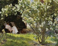 Bestelle diese Malerei Frau lesend im Garten von Antonije Lazovic als Reproduktion auf Leinwand, Alu-Dibond, als Poster, Fototapete oder Acrylglasbild.