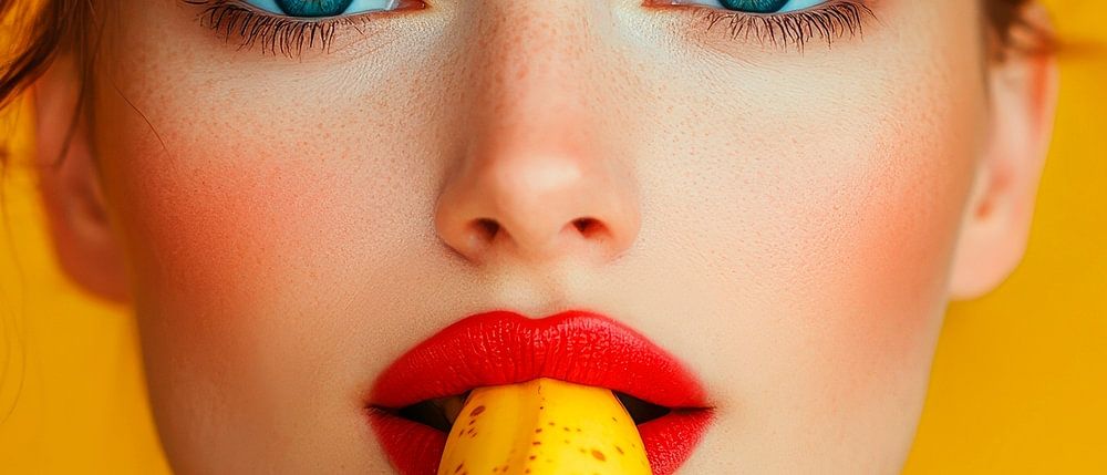 Lebendige Farben und ein aufregendes Spiel mit Fruchtigkeit und Sinnlichkeit ziehen sofort die Aufmerksamkeit auf sich. Der strahlende Gelbton hinter der Person vermittelt Wärme und Lebensfreude, während der kühne Ausdruck der Frau mit ihrem interessanten Accessoire die Blicke fesselt. Perfekt für eine kreative Küche oder ein inspirierendes Wohnzimmer!