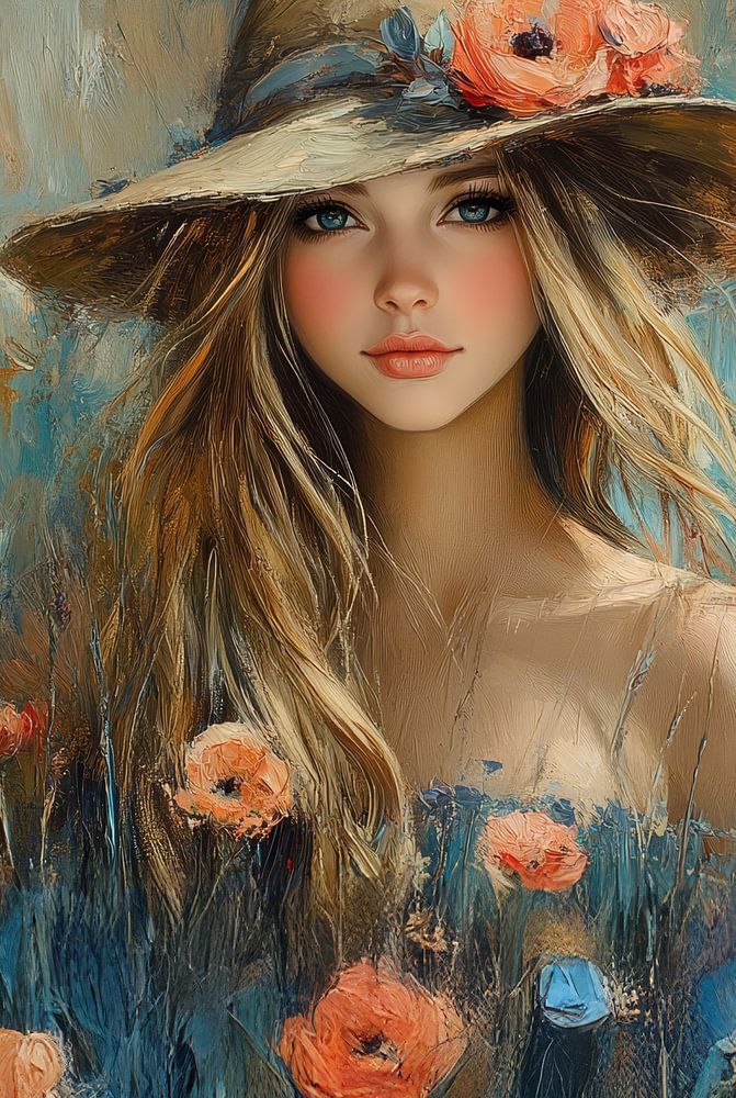 malerische digitale Fiktion Porträt der Frau mit Blumen in metropolitan Stil