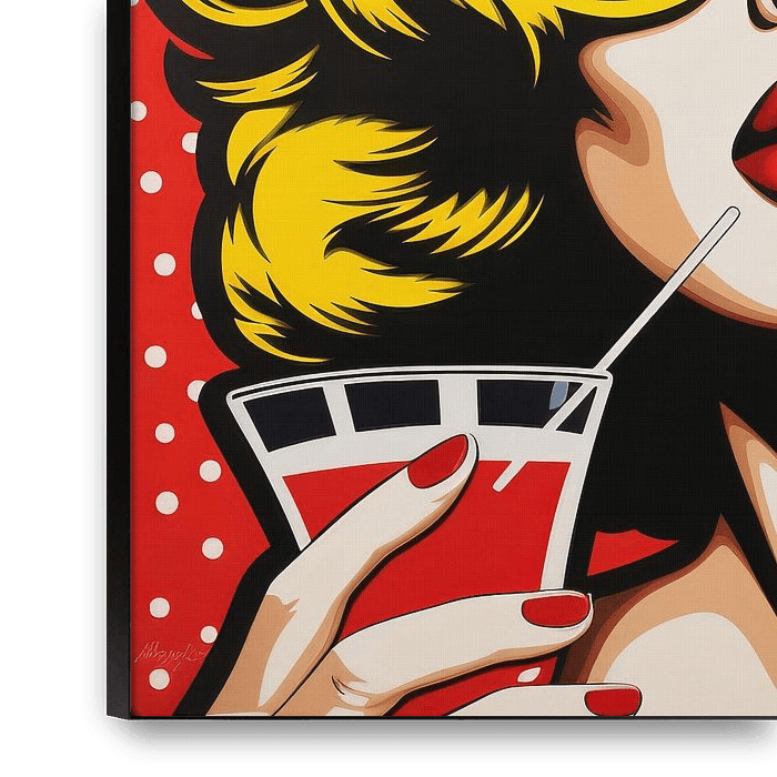 Modernes sommerliches Bild einer blonden Frau mit Cocktail im Pop-Art Stil.