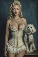fiktives Fantasieporträt einer Frau mit Haustier im Retro-Boudoir-Look