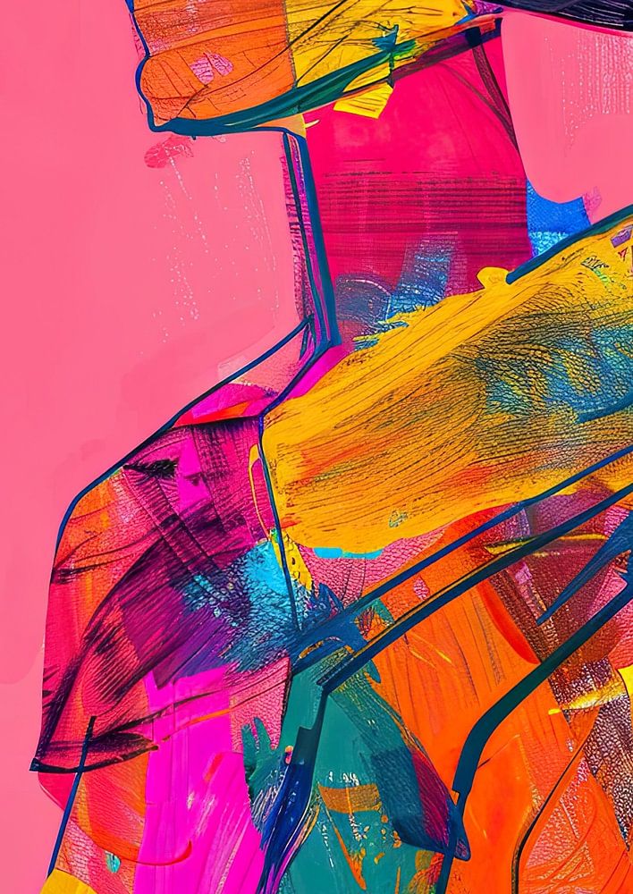 Details: Frau, moderne Kunst, rosa, leuchtende Farben, Hut, abstrakt, Gemälde, bunt, Kunst, dynamisch