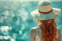 Bestelle das digitale Kunst Bild Frau mit Hut blickt auf das Meer von Egon Zitter als Reproduktion auf Leinwand, Alu-Dibond, als Poster, Fototapete oder Acrylglasbild.