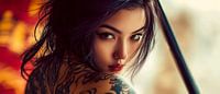Über „Frau mit Tattoos und Schwert – Porträt“ von Poster Art Shop