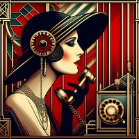 Bestelle dieses Art Deco-Wandbild Frau mit Telefon Art Deco von Tatjana Korneeva als Reproduktion auf Leinwand, Alu-Dibond, als Poster, Fototapete oder Acrylglasbild.