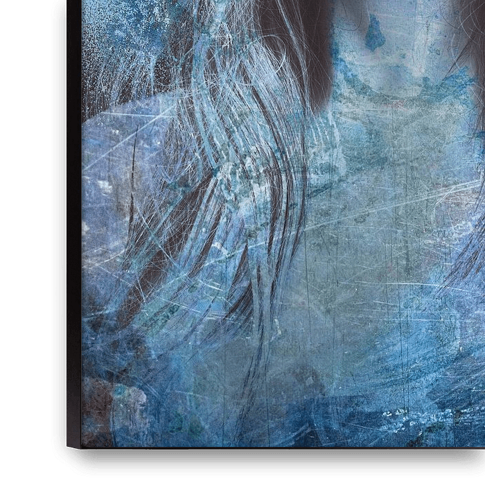 Bestelle dieses Porträt Frau mit blauem Blut von Marijke de Leeuw - Gabriëlse als Reproduktion auf Leinwand, Alu-Dibond, als Poster, Fototapete oder Acrylglasbild.