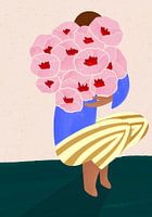 Bestelle dieses Blumen-Wandbild Frau mit einem Blumenstrauß von Bea Muller als Reproduktion auf Leinwand, Alu-Dibond, als Poster, Fototapete oder Acrylglasbild.
