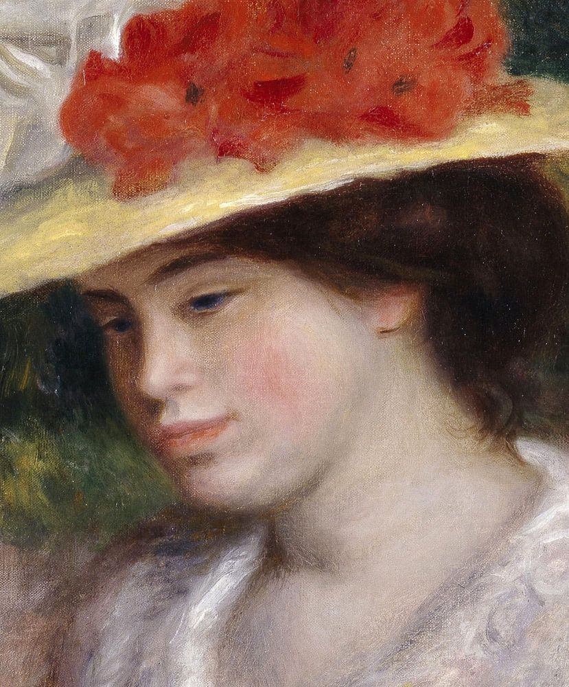 Frau mit geblümtem Hut, Pierre-Auguste Renoir (1889)