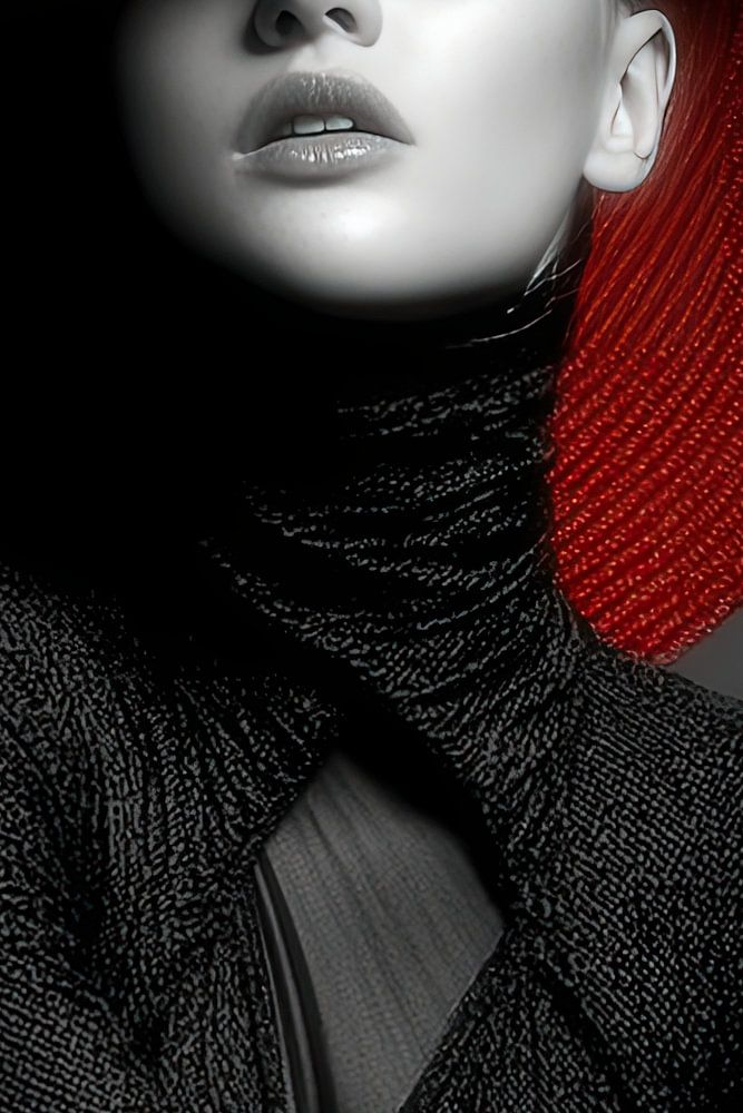Mode-Modell Fotografie Porträt in schwarz und weiß mit roten Akzenten
