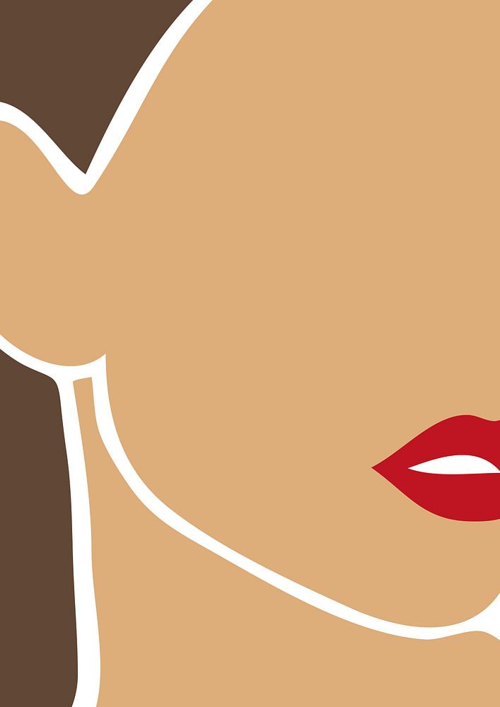 Minimalistische digitale Illustration einer Frau mit leuchtend roten Lippen und einer langen dunkelbraunen Litze.