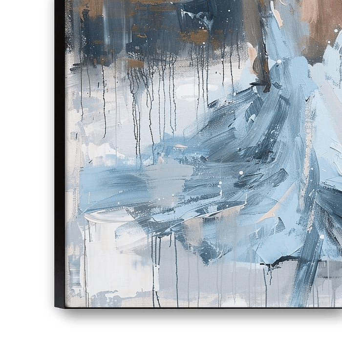 Woman Back | Frau im abstrakten Raum - Dieses Frauenbild zeigt eine Frau in einem hellen Kleid, die dem Betrachter den Rücken zuwendet, umgeben von einem abstrakten Hintergrund in verschiedenen Grautönen und sanften Blau- und Erdtönen.
