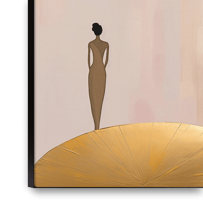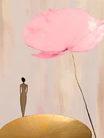 Bestelle dieses Blumen-Wandbild Frau und Seerose in Gold und Rosa von Caroline Drijber Guérain als Reproduktion auf Leinwand, Alu-Dibond, als Poster, Fototapete oder Acrylglasbild.