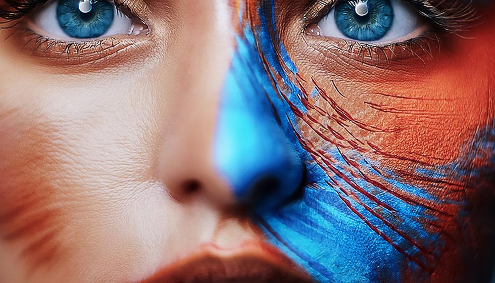 Frauen Gesicht mit Verschiedene Farben im Gesicht