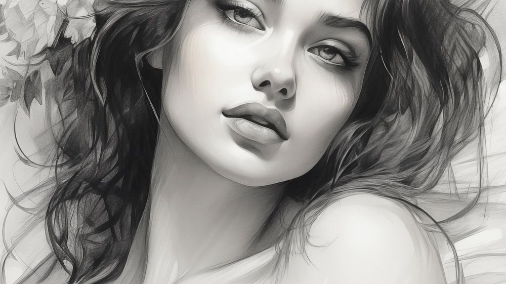 Frauenporträt-Zeichnung, Bleistiftzeichnung im Vintage-Stil.
