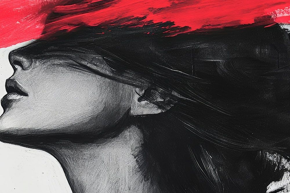 Ein ausdrucksstarkes Porträt, in dem kraftvolle rote Pinselstriche die Gedanken einer träumerischen Figur umreißen. Die Kontraste von Schwarz und Rot verleihen dem Bild eine dynamische Energie, die perfekt in ein modernes Wohnzimmer passt und sofort das Gespräch anregen wird. Ideal für alle, die kreative Inspiration schätzen!