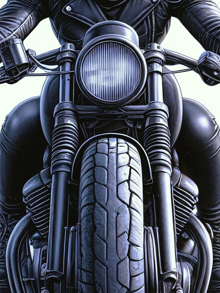 Dieses digitale Kunstwerk zeigt die Dynamik und den Ausdruck individueller Freiheit durch die Darstellung einer Motorradfahrerin in einer rasanten Fahrt.