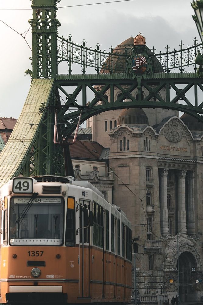Die Freiheitsbrücke in Budapest, auch bekannt als die „Grüne Brücke“, verbindet Buda mit Pest über die Donau und ist eine der bekanntesten Brücken der Stadt. Sie wurde 1896 erbaut und nach der Befreiung Ungarns von den Osmanen im Jahr 1686 benannt. Die Brücke besticht durch ihre markante grüne Farbe und die schönen Jugendstil-Elemente, die sowohl an den Brückentürmen als auch an den Geländern zu finden sind.