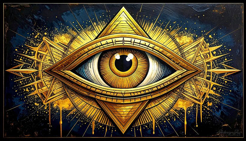 Bestelle dieses abstrakte Wandbild Freimaurer – Im Blick der Vorsehung: Das allwissende Auge zwischen goldener Offenbarung, alchemistischer Materie und der Tiefe des verborgenen Lichts von AidasignArt als Reproduktion auf Leinwand, Alu-Dibond, als Poster, Fototapete oder Acrylglasbild.