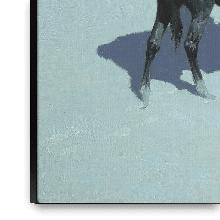 Freunde oder Feinde? (Der Späher), Frederic Remington Ein einsamer Blackfoot-Indianer beugt sich auf seinem Pferd vor und blickt über die verschneite Landschaft auf die Lichter eines entfernten Lagers. Die Haltung der Figur, der Atem des Pferdes und der schimmernde Himmel erzeugen eine fast greifbare Stille und Spannung – der Reiter kann unmöglich wissen, ob er im Lager willkommen sein wird. Die düstere Stimmung des Gemäldes spiegelt einen Wandel in Remingtons zahlreichen Darstellungen des Westens und seiner zunehmend isolierten indianischen Bevölkerung wider und zeugt von der Sehnsucht nach einer Lebensweise, die seiner Meinung nach im Verschwinden begriffen war.