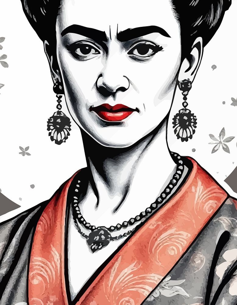 Das Porträt von Frida in japanischer Malerei fängt ihr Wesen mit zarten Pinselstrichen und leuchtenden Farben ein. Beeinflusst von traditionellen Ukiyo-e-Techniken, kombiniert das Werk florale Motive und subtile Landschaftselemente, die ihre tiefe Verbundenheit mit der Natur und ihre Identität symbolisieren und gleichzeitig ihre Widerstandsfähigkeit und Leidenschaft zum Ausdruck bringen.