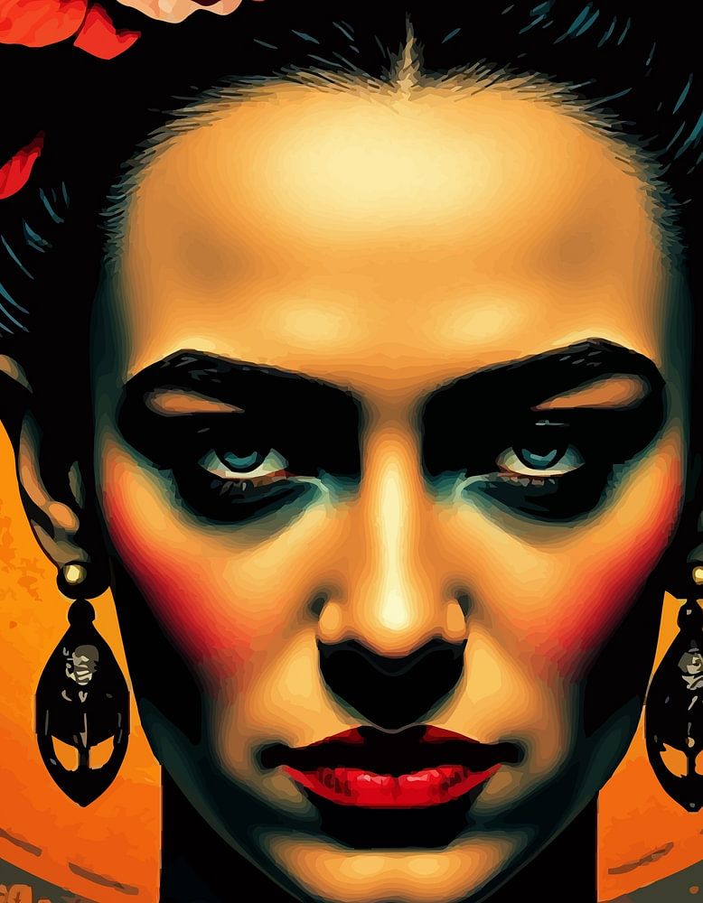 Dieses Porträt von Frida verschmilzt nahtlos ihre ikonische Persönlichkeit mit klassischer abstrakter Kunst. Kräftige Farben und kräftige Pinselstriche erinnern an ihren leidenschaftlichen Geist, während stilisierte Formen ihre einzigartige Identität unterstreichen. Das Zusammenspiel von geometrischen Formen und organischen Linien spiegelt ihre inneren Kämpfe und ihre Widerstandsfähigkeit wider und fängt die Essenz ihres künstlerischen Schaffens und Lebens ein.