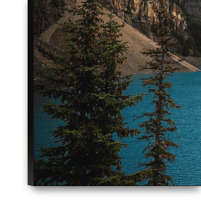 Bestelle dieses Landschafts-Wandbild Friedlicher Moraine-See von Steffon Reid als Reproduktion auf Leinwand, Alu-Dibond, als Poster, Fototapete oder Acrylglasbild.
