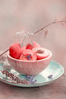 Zarte Farben, frisches Obst in einer Schale aus Bambus-holz gefertigt.